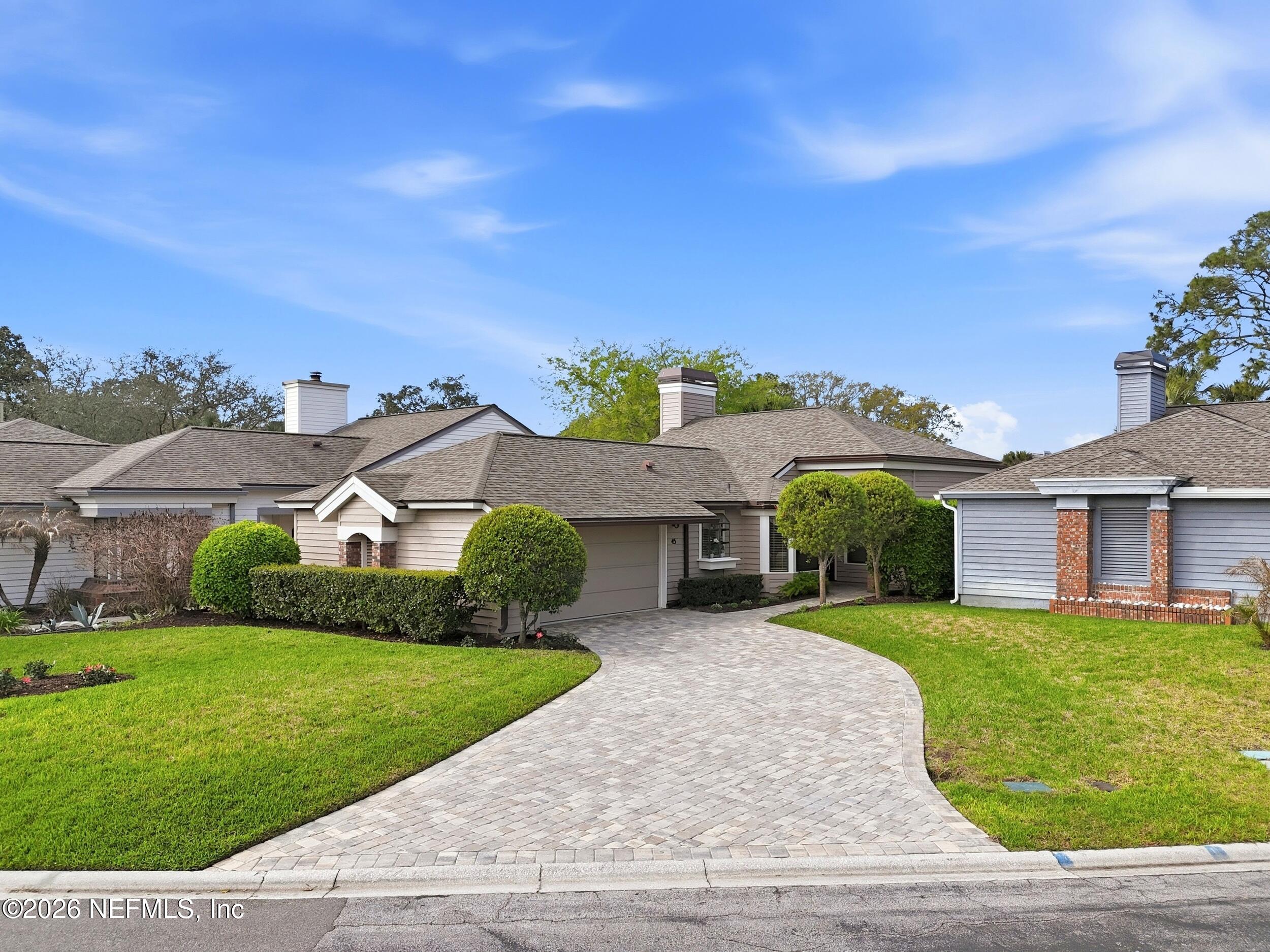 Welcome to 45 Walker's Ridge! This 2 bedroom, 2 bath home lives large with its open concept floor plan. One of the outstanding features includes a centrally located fireplace overlooked by the main Gathering Room with a vaulted ceiling and an adjoining Dining Room. The Kitchen features a Breakfast Nook and service island, perfect for meal prep. You will love the versatile and vented pond-front Sunroom which could be used as a second seating area or an office/work space with a water view. Lots of options! The outside of the home has a driveway with beautiful pavers and a rear deck overlooking the peaceful pond and fountain. Walker's Ridge is located within walking distance to the association pool, and sidewalks leading to the beach or great for a shady afternoon walk. Don't miss this great value and incredible home!