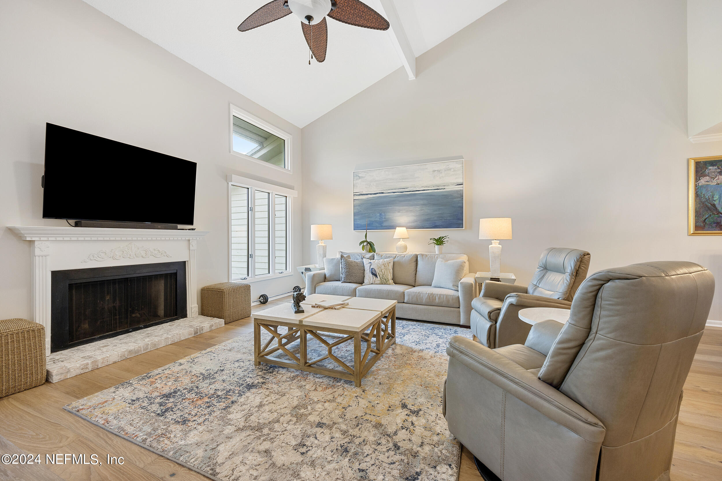 MAJOR price improvement!! Don't miss this amazing opportunity and incredible value. The recent updates make this special waterfront villa move-in ready. Some of the updates include all new gorgeous wood flooring, new bathroom vanities and quartz tops, new interior doors, new LED lighting throughout, new Dining Room chandelier, new electrical outlets and all freshly painted throughout. You'll love the oversized newly screened entertainment space with its water view, featuring a separate area for grilling. In addition, there is a covered storage outside, perfect for bikes and beach chairs. Players Club Villas has always been popular for its amazing location and proximity to the beach, Sawgrass Village's shopping and dining, walking paths and abundance of nature. A perfect place to call home!